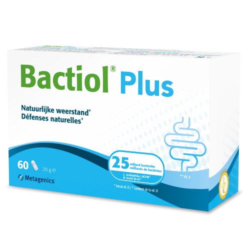 Füllstoff: mikrokristalline Cellulose, Kapsel (Hydroxypropylmethylcellulose, Farbstoff: Calciumcarbonat), Lactobacillus acidophilus NCFM, Bifidobacterium lactis Bi-07, Antiklumpmittel: Silica und Magnesiumsalze von Fettsäuren, Beta-Carotin, Cholecalciferol.Verwendung von Metagenics Bactiol Plus: