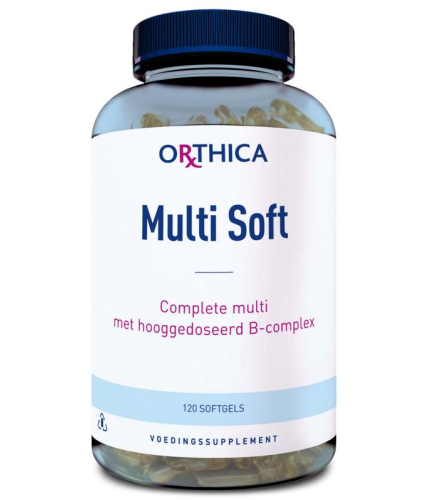 Orthica Soft Multi ist ein komplettes Multivitaminpräparat mit einem hochdosierten B-Komplex.Dieses Multivitamin eignet sich besonders bei geistiger Anstrengung (Vitamin B1, B3, B6, B12 und Biotin) und Müdigkeit (Vitamin B2, B3, B5, B6, Folsäure, B12 und Vitamin C).