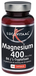 Lucovitaal® Magnesium B6 L-Tryptophan Kapseln enthalten 400 mg Magnesium pro Kapsel sowie L-Tryptophan und Vitamin B6. Dadurch sind diese Kapseln ideal für Menschen, die sich antriebslos und müde fühlen.Zusammensetzung von Lucovitaal Magnesium 400 B6 L-Tryptofaan: