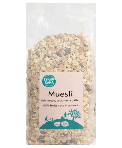 Muesli 40% Noten, Vruchten & Pitten Bio 750 Gramm von Terrasana ist 5.99 euro und hat die Lieferzeit von 1 - 2 Arbeitstagen.