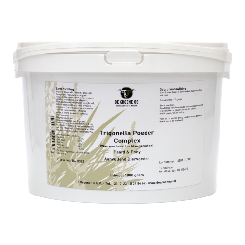 Verfassen Sie Ihre Produktbewertung für 1000 Gramm De Groene Os Veterinair Fenegriek Mix Complex Paard & Pony hier!