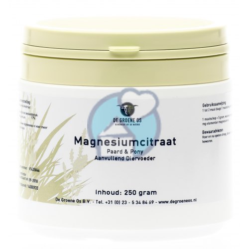 Magnesiumcitraat voor Paard en Pony 250 Gramm von De Groene Os Veterinair ist 27.55 euro und hat die Lieferzeit von 2-3 Arbeitstagen.
