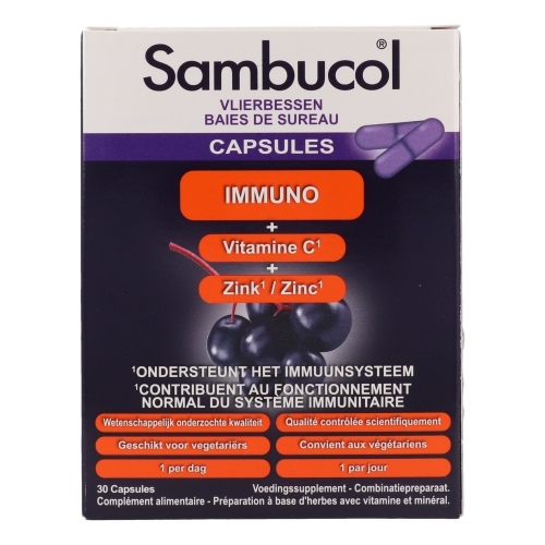 Unterstützt euren Widerstand!Sambucol Immuno Kapseln sind ein Holunderbeerenextrakt, angereichert mit Vitamin C und Zink.