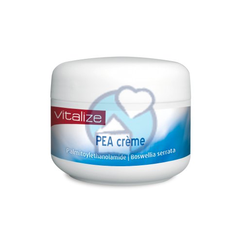 Vitalize PEA Cream ist für empfindliche Haut geeignet und enthält pflegende und beruhigende Inhaltsstoffe. Die Creme enthält 1,5 Gramm Palmitoylethanolamid und 200 mg Boswellia serrata pro 100 ml.PEA (Palmitoylethanolamid) wurde bereits in verschiedenen wissenschaftlichen Studien mit vielen positiven Ergebnissen untersucht. Da PEA natürlich im Körper vorkommt, ist es eine wirksame und sichere Substanz.