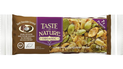 Verfassen Sie Ihre Produktbewertung für 40 Gramm Taste of Nature Dark Chocolate Coconut Eiwitreep Biologisch hier!