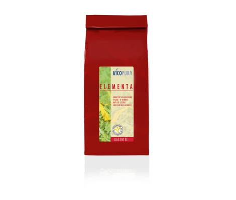 Anis, Birkenblätter, Brennnesselblätter, Brombeerblätter, zerbrochene Kräuter, Bohnenkraut, Bohnenschoten, Ehrenpreis, Eisenkraut, Fenchel, Hagebutte, Holunderblüte, Kümmelsamen, Labkraut, Zitronengras, Lindenblüten, Liebstöckelblätter, Lungenkraut, Majoran, Malvenblätter, Zitronenmelisse, Nelken, Süßorangenschalen, Petersilie, Ringelblume, Rosmarin, Schlehe, Spitzwegerich, Veilchen, natürliche Süßholzwurzel, Zitronengras, Thymian, Wacholderspitzen, Waldmeister.Verwendung von Vicopura Elementathee: