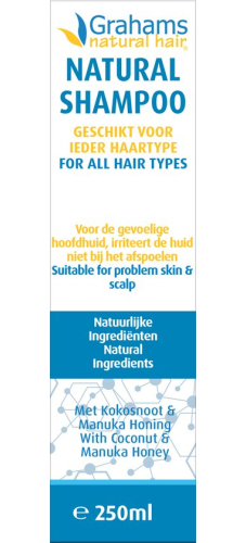 Natural Shampoo Alle Haartypes 250 ml of Grahams is 16.34 euro and has a delivery time of In stock! working days.