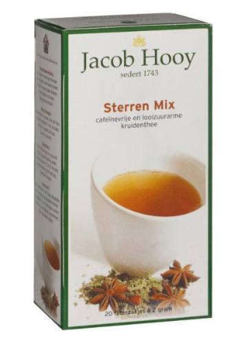 Sterren Mix Theezakjes 20 bag of Jacob Hooy is 1.97 euro and has a delivery time of 2-3 working days.