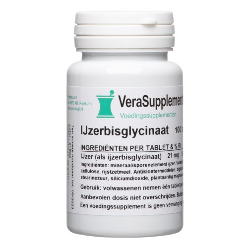 IJzerbisglycinaat 100 tablets of VeraSupplements is 13.50 euro and has a delivery time of In stock! working days.