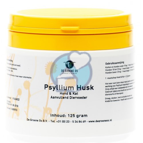Psyllium Husk voor Hond en Kat 125 gram of De Groene Os Veterinair is 16.90 euro and has a delivery time of 1 - 2 working days.