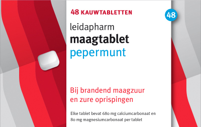 For heartburn and acid regurgitation. The active ingredients in the tablets, calcium carbonate and magnesium carbonate neutralise excess stomach acid.Composition of Leidapharm Maagtablet Pepermunt: