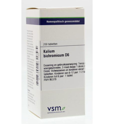 Kalium Bichromicum D6 200 tablets of VSM Enkelvoudige Homeopathie is 13.24 euro and has a delivery time of 10-14 working days.