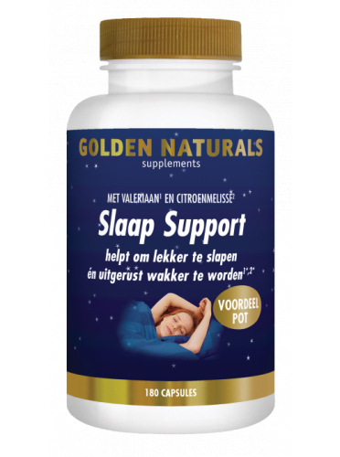 Slaap Support Voordeelpot 180 capsules of Golden Naturals is 44.21 euro and has a delivery time of In stock! working days.