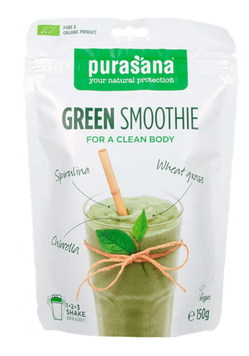 Purasana's Green Smoothie combines three powerful superfoods: chlorella, spirulina, and wheatgrass. This means you get three different superfoods in just one smoothie. These superfoods have a detoxifying effect. Cleansing your body has never been easier or more delicious.✓Chlorella has a purifying effect