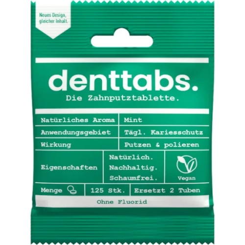 Toothpaste Tablets Mint 100% Natural 125 tablets of Denttabs is 6.99 euro and has a delivery time of 2-3 working days.
