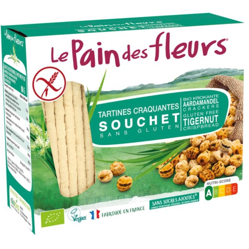 Krokante Crackers met Aardamandel Biologisch 150 gram of Le Pain des Fleurs is 4.49 euro and has a delivery time of In stock! working days.