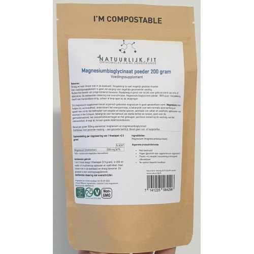 Magnesiumbisglycinaat Poeder 200 gram of Natuurlijk.Fit is 32.00 euro and has a delivery time of In stock! working days.
