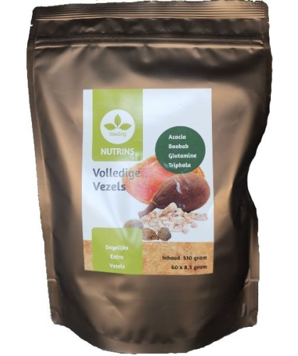 Fibres are small plant particles and complex carbohydrates. These are linked glucose chains that are not absorbed by the intestinal wall but serve as food for bacteria in the colon. Those bacteria turn them into good nutrients.This pack contains 60 servings of 8.5 grams.