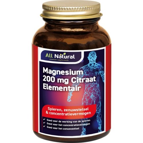 Magnesium Citraat 200 mg Elementair 60 tablets of All Natural is 12.95 euro and has a delivery time of 2-3 working days.