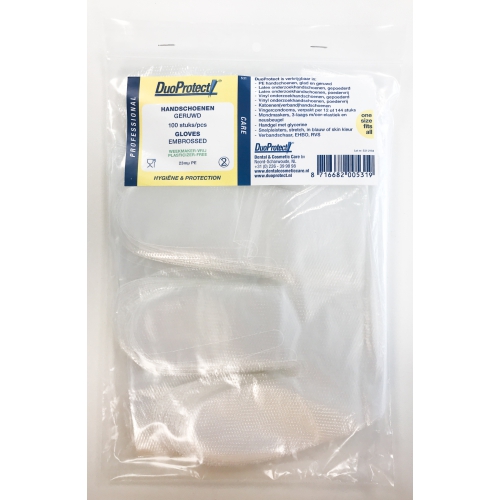 Wegwerphandschoenen Geruwd Transparant 100 pieces of Duoprotect is 3.76 euro and has a delivery time of 1 - 2 working days.