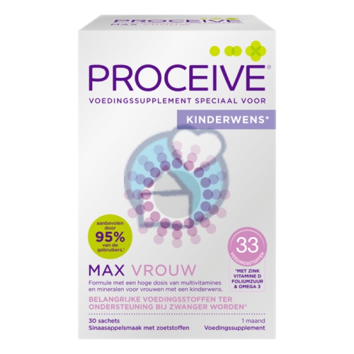 Kinderwens Max Vrouw 30 sachets of Proceive is 56.95 euro and has a delivery time of In stock! working days.