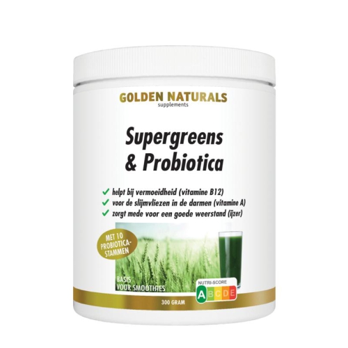 Golden Naturals Supergreens & ProbioticsA powder with barley grass, wheatgrass, probiotics and a vegetable and fruit complex and as a base for smoothies.
