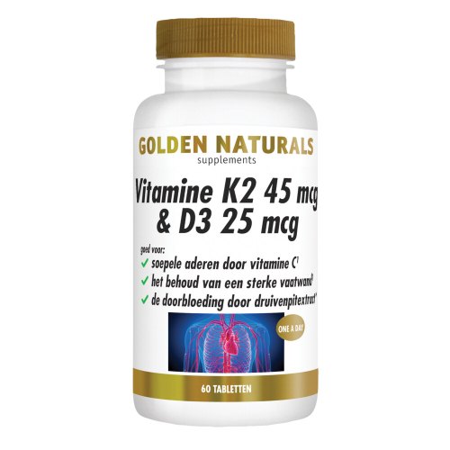 Write your product review for 60 tablets Golden Naturals Vitamine K2 45 mcg & D3 25 mcg! here