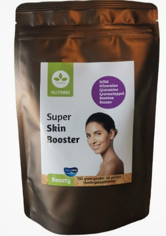Nutrins has developed and created a good-tasting daily supplement with Super Skin Booster. The composition is a complete approach: protective, nourishing and facilitating. It supports the body's own processes.Bamboo (tabasheer or tabashir), tabasheer is one of the richest natural sources of organic silica (silica or silicon). This bamboo is standardised at 70% organic silica. Besides silica, it contains iron, calcium, choline and betaine. This synergistic combination of minerals makes bamboo one of the most effective (and natural) mineral supplementation. Supports the skin's healing ability.