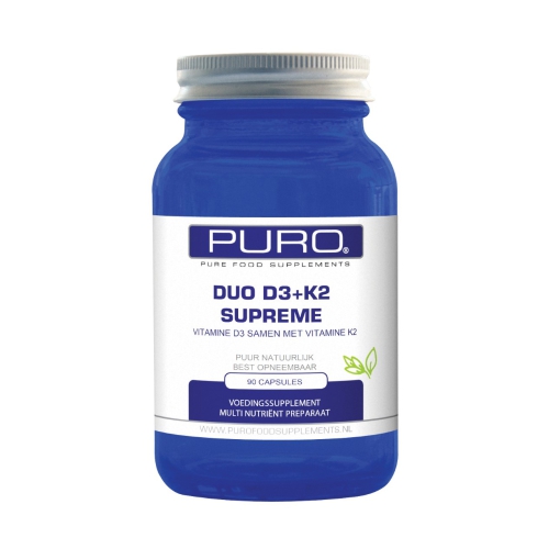 Duo D3 + K2 Supreme 90 capsules of Puro Food Supplements is 61.95 euro and has a delivery time of In stock! working days.