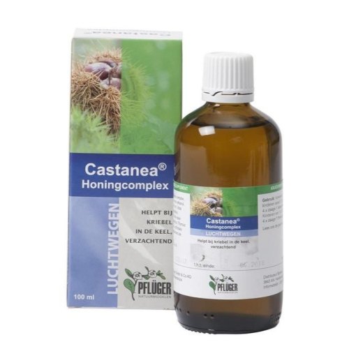 Sweetener (Sirupus simplex), honey, solvent (water, ethanol) herbs, Honey, Mullein, Violet, Sweet Chestnut, Elderberry, Wild sarsaparilla, Iceland moss, Wild thyme and Valerian.Usage of Pfluger Castanea Honingcomplex: