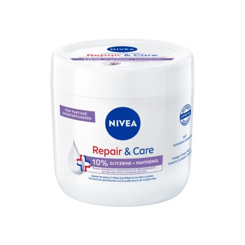 NIVEA Repair & Care Body Lotion was specially developed in collaboration with our expert dermatologists. The highly effective formula is infused with the unique NIVEA Deep Moisture Serum and soothing dexpanthenol to strengthen your skin's barrier and prevent moisture loss. Used regularly, NIVEA Repair & Care Body Lotion relieves your skin of tightness for up to 72 hours! After just one application, it helps soothe irritated areas while softening dry and rough skin.Ingredients of Nivea Repair & Care Bodycream Gevoelige Huid: