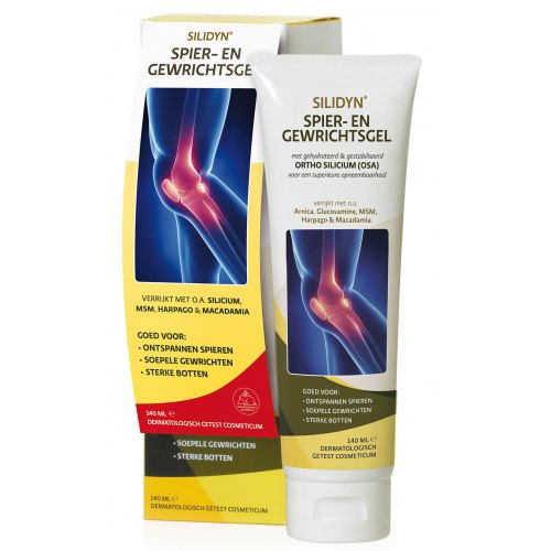 Silidyn Silicium Spier- en Gewrichtsgel is een ultradoordringende gel met bijzondere stoffen voor soepele gewrichten, sterke botten, ontspannen spieren en een weerbare huid. Deze stoffen bevorderen de microcirculatie ten behoeve van de spieren, ondersteunt de aanmaak van kraakbeen en gewrichtsvloeistof, ondersteunt een goede botaanmaak en verbetert de huidtonus. Door de multifunctionele werking is Silidyn Silicium Spier- en Gewrichtsgel doelgericht en effectief inzetbaar.Spier en gewrichtsgel met gehydrateerd & gestabiliseerd Ortho Silicium (OSA) voor een superieure opneembaarheid. Verrijkt met o.a. Arnica, Glucosamine, MSM, Harpago & Macadamia.