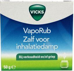 Vicks VapoRub is een combinatiepreparaat van vluchtige olien en aromatische stoffen en werkt na inhaleren via de neus. Het inhaleren van dampen, die vrijkomen door lichaamswarmte of door toevoeging van de zalf aan heet water (dampbad) wordt als verlichtend ervaren.