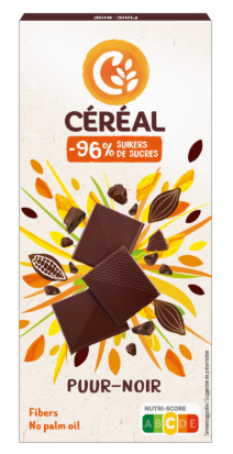 Cereal puur chocolade tablet.Pure chocolade, met zoetstof.