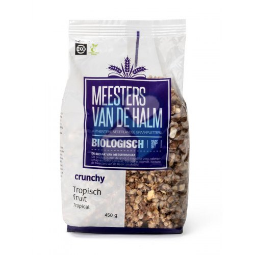 Van 450 gram Meesters van de Halm Crunchy Tropisch Fruit Biologisch zijn geen veel gestelde vragen vermeld.