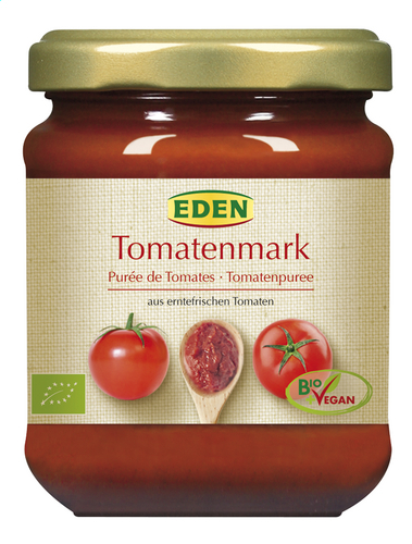 Eden Organic Tomatenpuree wordt uitsluitend verkregen door