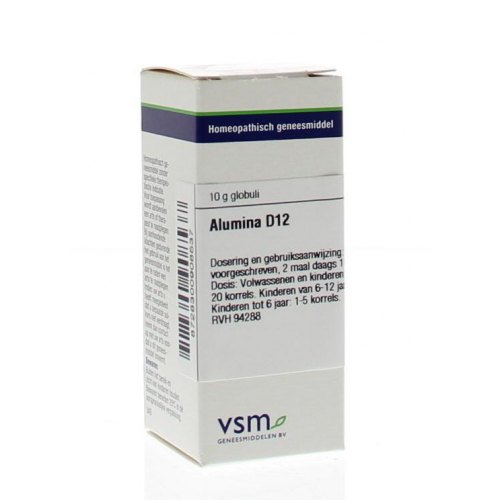 Voor de bereiding zijn hulpstoffen gebruikt. Korrels (globuli/granules) zijn gemaakt van bietsuiker (saccharose).Gebruik van VSM Enkelvoudige Homeopathie Alumina D12: