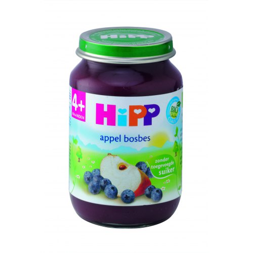Toepassing van HiPP Biologisch Fruit Appel-Bosbes vanaf 4 maanden: