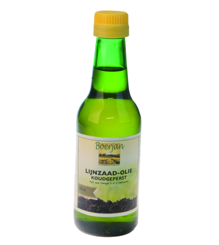 De Boerjan Lijnzaadolie is een plantaardig product dat rijk is aan meervoudig onverzadigde vetzuren (omega-3 en omega-6 vetzuren) zoals het belangrijke alpha-linoleenzuur.