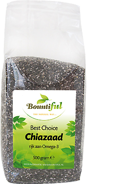 Het Chiazaad komt van de Chia plant (Salvia Hispanica) en is afkomstig uit Midden Amerika. De zaden zijn bijzonder rijk aan Omega-3 vetzuren, vitaminen, mineralen, eiwitten, voedingsvezels, anti-oxidanten en passen goed in een gevarieerd voedingspatroon.