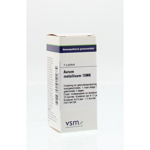Voor de bereiding zijn hulpstoffen gebruikt. Korrels (globuli/granules) zijn gemaakt van bietsuiker (saccharose).Gebruik van VSM Enkelvoudige Homeopathie Aurum Metallicum 10MK:
