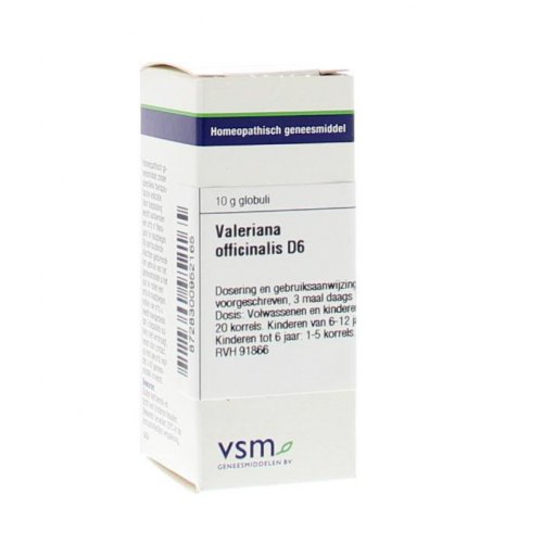 Voor de bereiding zijn hulpstoffen gebruikt. Korrels (globuli/granules) zijn gemaakt van bietsuiker (saccharose).Gebruik van VSM Enkelvoudige Homeopathie Valeriana Officinalis D6: