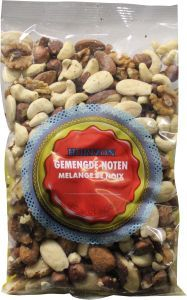 Amandelen*, cashewnoten*, paranoten*, walnoten*, hazelnoten*.* Van gecontroleerde biologische teelt.