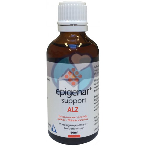 Het product ALZ van Epigenar support bevat als actieve ingrediënten een water-alcohol extract van Rozemarijn (Rosmarinus officinalis) blad, Indische waternavel (Bacopa monnieri) kruid, Aziatische waternavel (Centella asiatica) kruid en Ashwagandha (Whitania somnifera) wortel.Over de effecten van deze kruiden op de hersenen en met name geheugen is veel te vinden in diverse publicaties. Het aanbevolen gebruik ter ondersteuning van de hersenfuncties is 2-3 x daags 10-20 druppels.