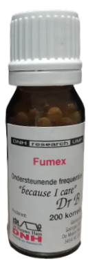Gezonde personen hebben een gezond functionerend frequentiepatroon. Via een vegatieve reflextest kunnen door een therapeut afwijkingen in de frequentie gemeten worden. De speciaal ontwikkelde middelen zijn gericht op dit frequentiepatroon.Ingrediƫnten van DNH Research Fumex:
