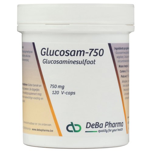 DeBa Pharma Glucosam 750 bevat 750 mg Glucosamine in de vorm van glucosaminesulfaat.Samenstelling van DeBa Pharma Glucosam 750: