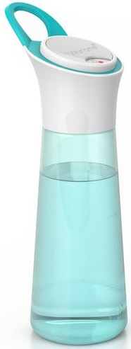 Elke keer dat u uw fles vult, draait u de schijf bovenop de dop een slag verder (met de klok mee).Met 4 flessen per dag drinkt u de dagelijkse aanbevolen hoeveelheid water.