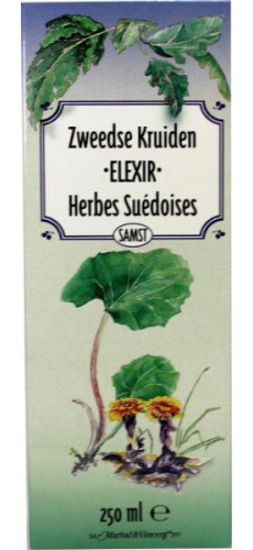 Zweedse kruiden elixer met kamfer.Zweedse kruiden elixer naar aloud recept, van de botanist Dr Samst, gebruikt voor allerlei doeleinden. Samengesteld uit puur natuurlijke kruiden en ingrediƫnten.