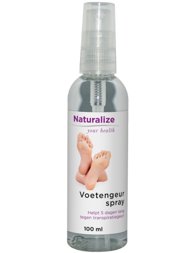 Naturalize Voetengeurspray helpt 5 dagen lang tegen transpiratiegeur.De werkzame stoffen in deze voetenspray maken het tot een uiterst krachtig, veilig en doeltreffend middel tegen sterk geurende zweetvoeten.