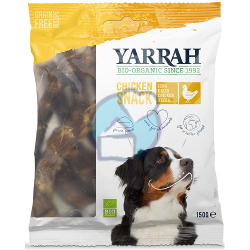 Een hondensnack bestaande uit 100% biologische kippennekken. Geschikt voor alle honden, van puppy’s tot senior honden. De smakelijke, gedroogde snack heeft een schurende werking op de tanden, waardoor het tandplak kan verwijderen. Een zuivere snack, vrij van kunstmatige toevoegingen, pesticiden en GMO.Ingrediënten van Yarrah Kippennekken voor Honden Biologisch: